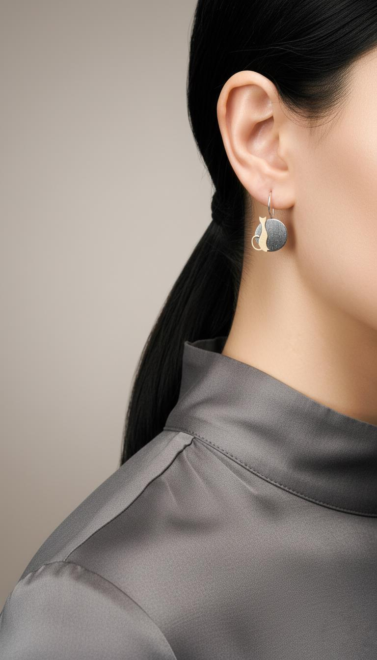 Küpe, yaklaşık 2 cm’lik damla formundadır ve her biri özenle çift olarak gönderilir. Bu zarif kedi figürü, hem minik detaylarla hem de güçlü sembolizmiyle öne çıkar: sevimlilik, özgürlük, kişisel stil.
