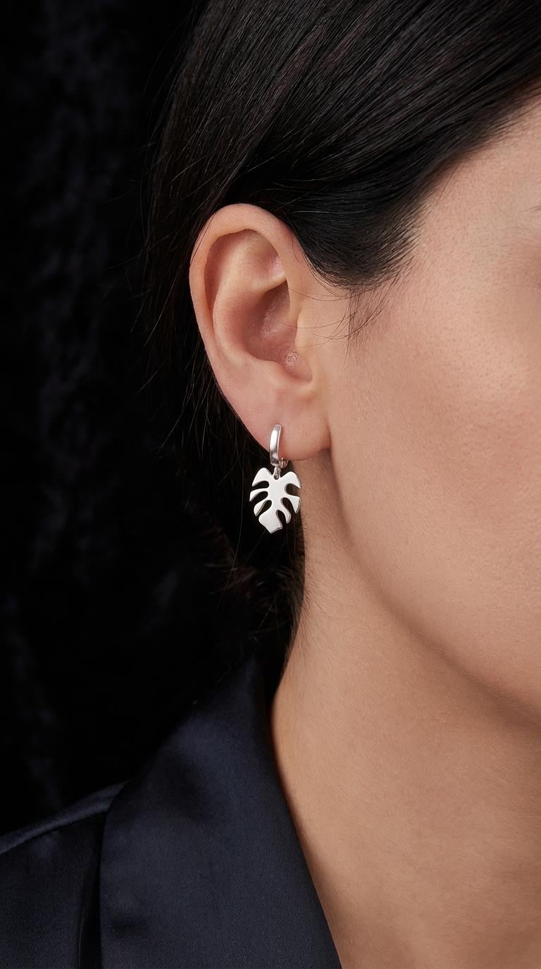 Monstera Gümüş Küpe, tropik doğanın zarif çizgilerini modern takı estetiğiyle birleştiren özel bir tasarımdır. Tamamen el işçiliğiyle 925 ayar gümüşten üretilen bu küpe, doğanın sembolik güzelliğini sade ve şık bir biçimde yansıtır.